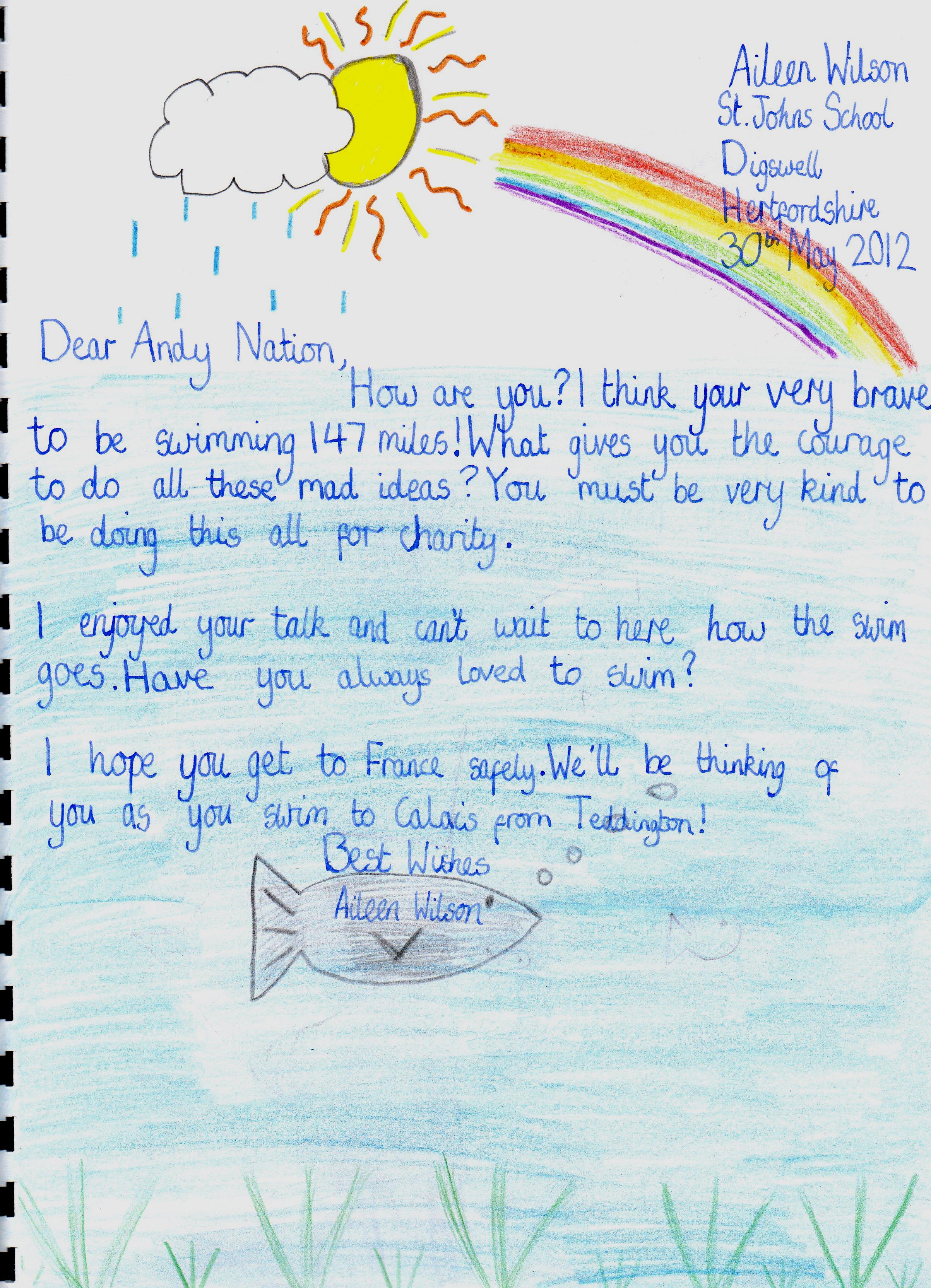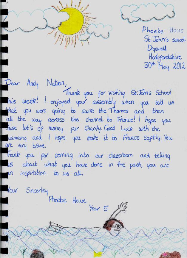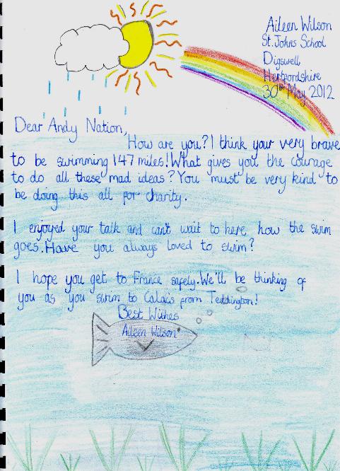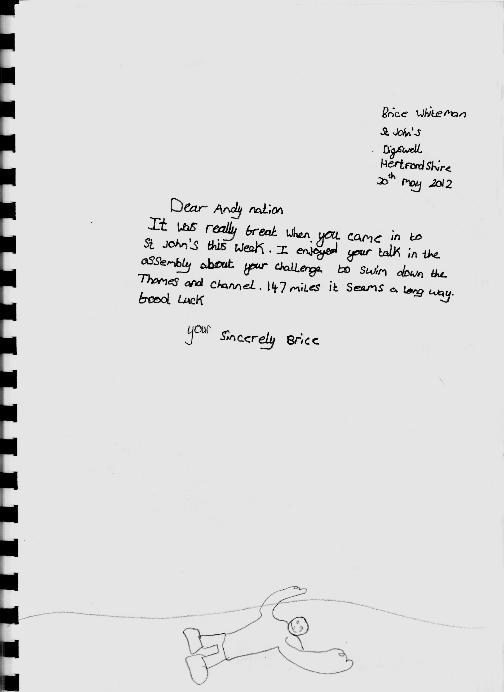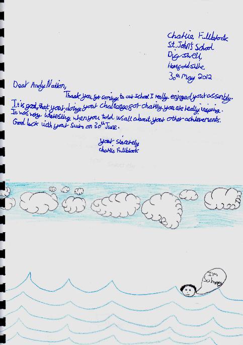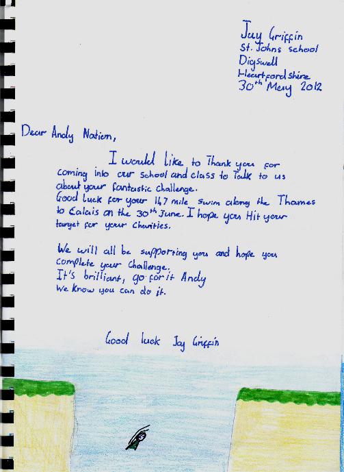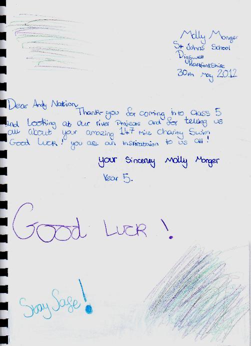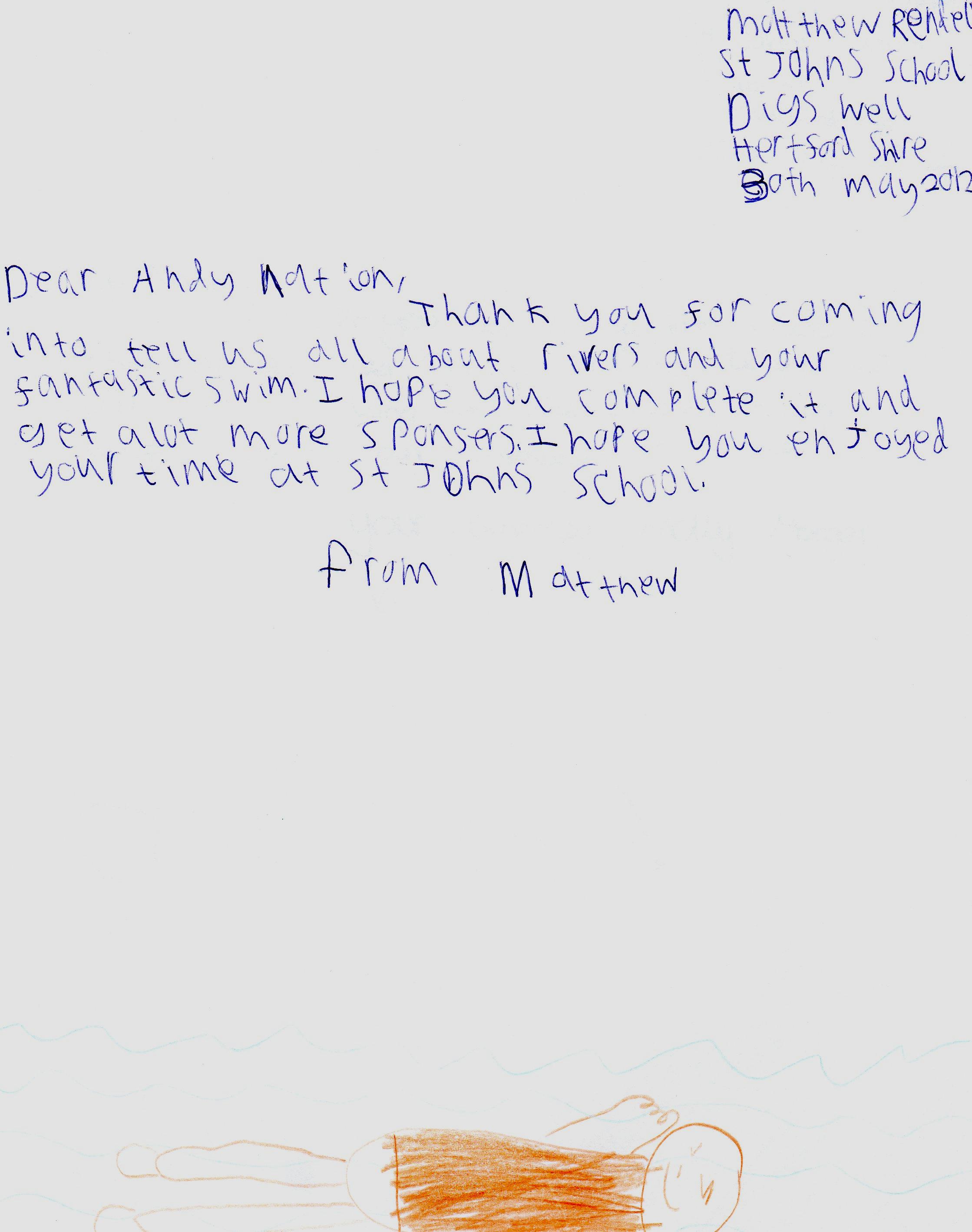 Below are enchanting letters to Andy following his visit to Class 5 of St John's School to see their project on 'Rivers'. |