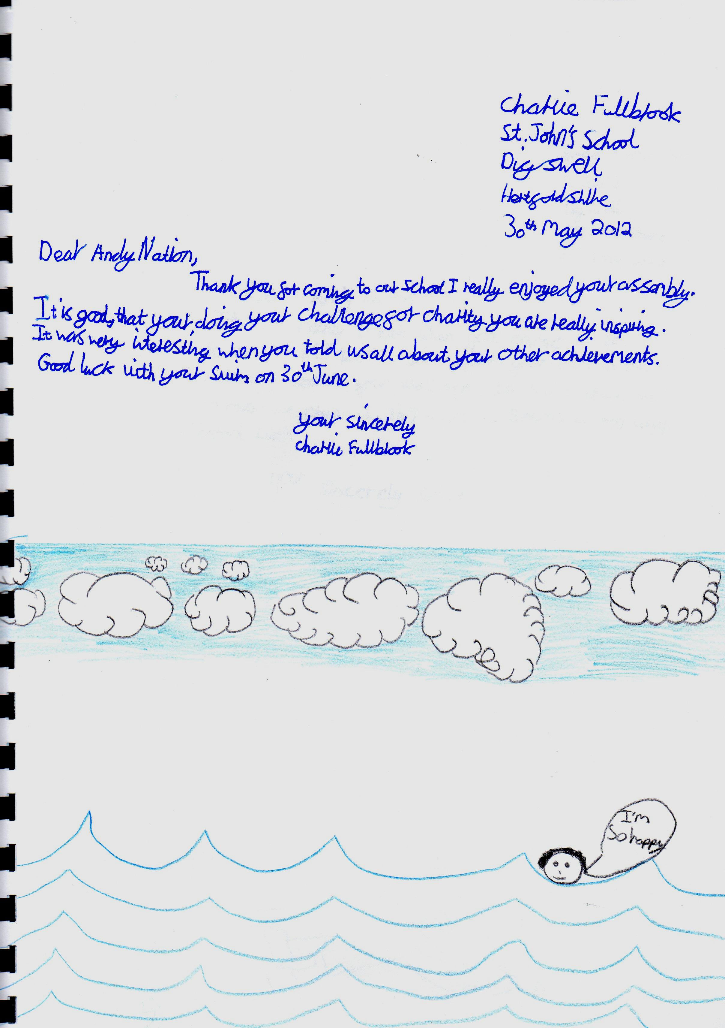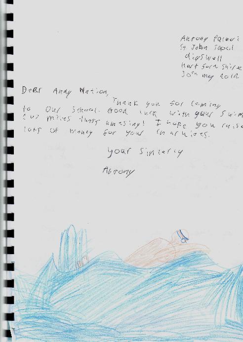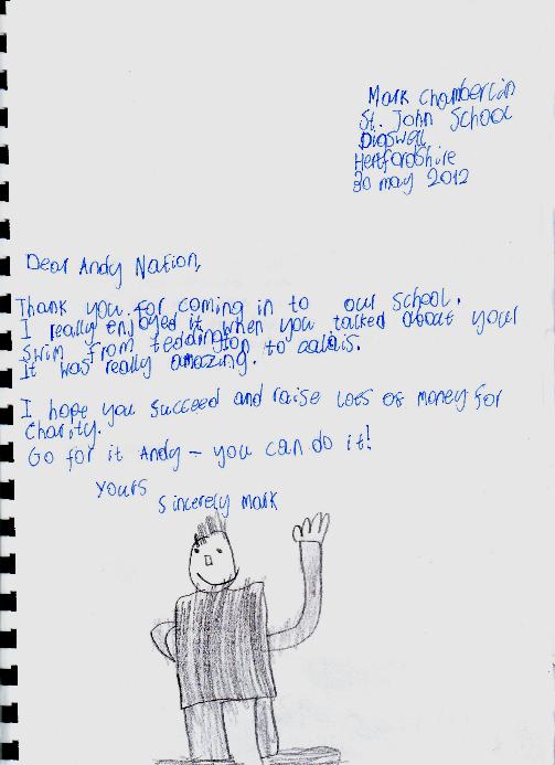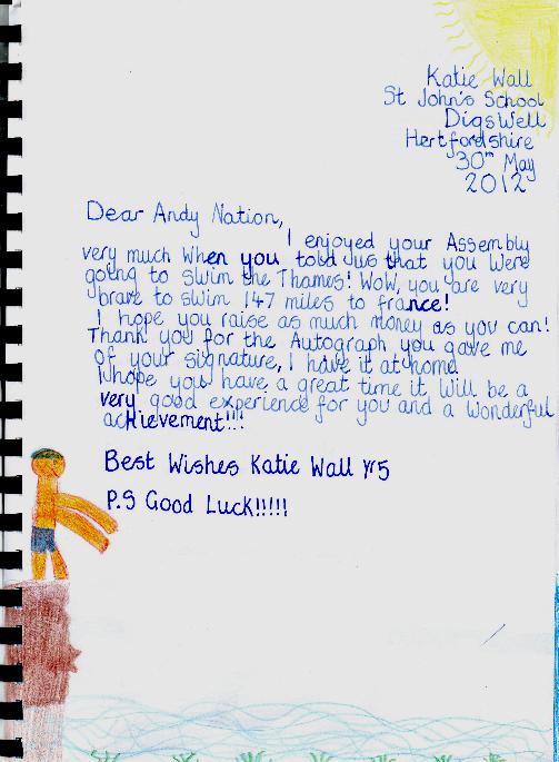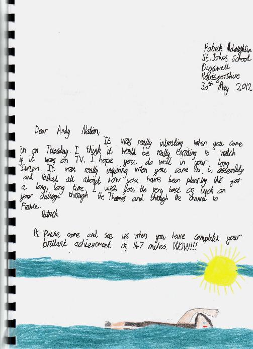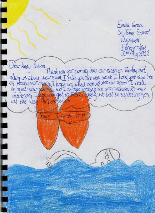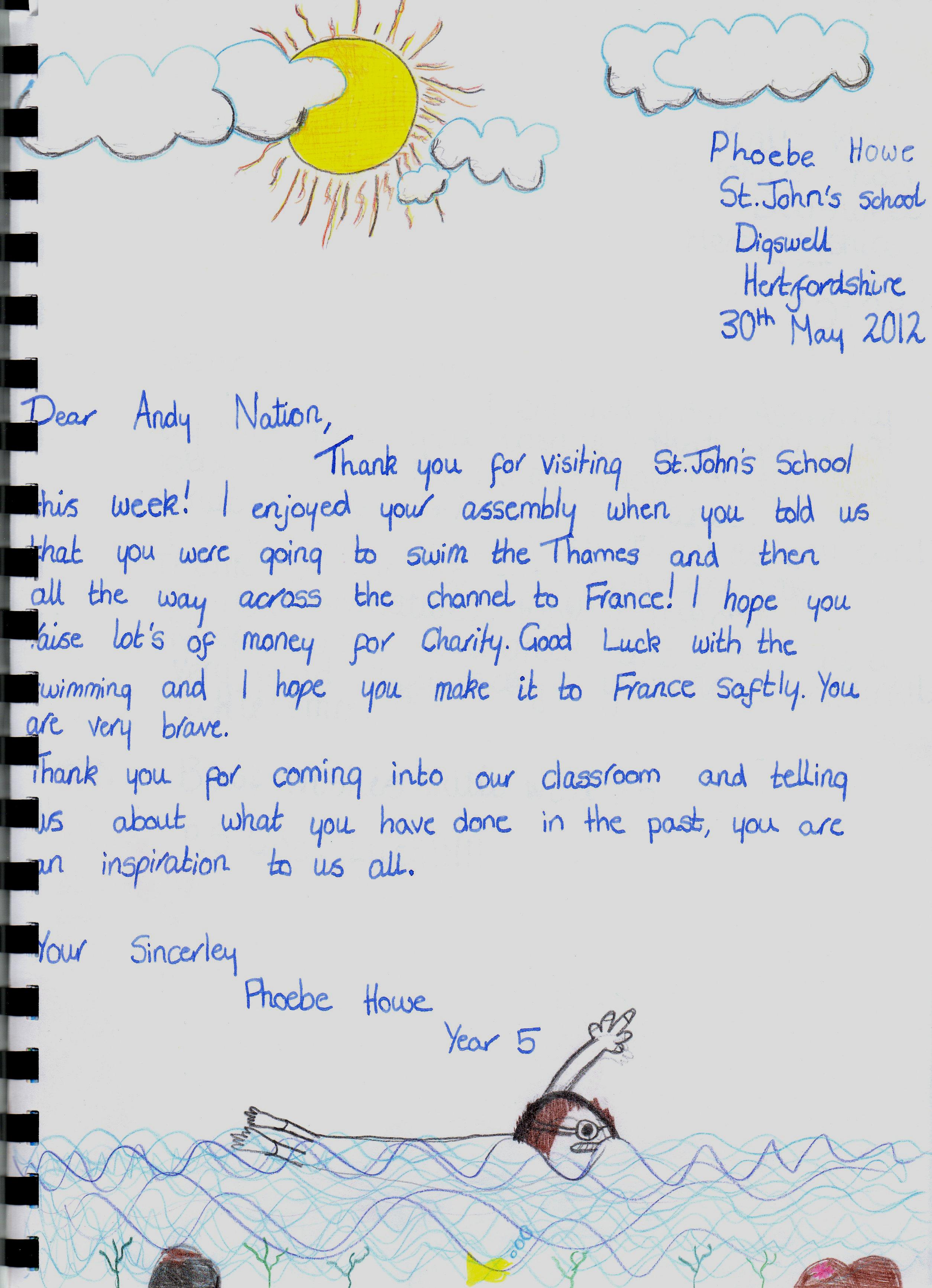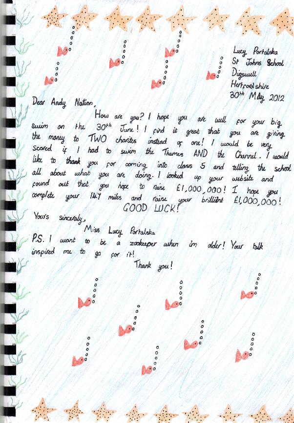 Below are enchanting letters to Andy following his visit to Class 5 of St John's School to see their project on 'Rivers'. |