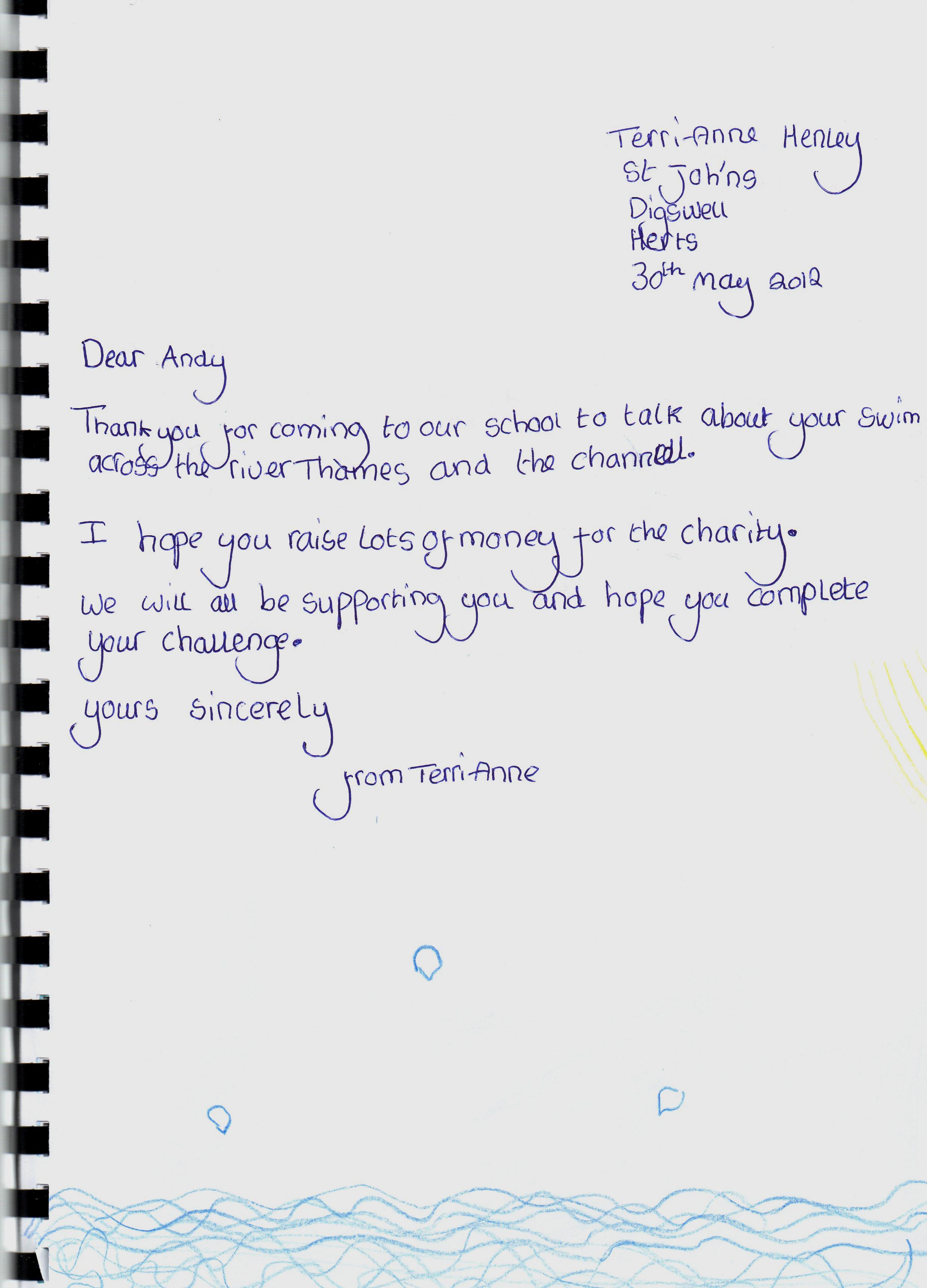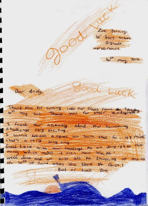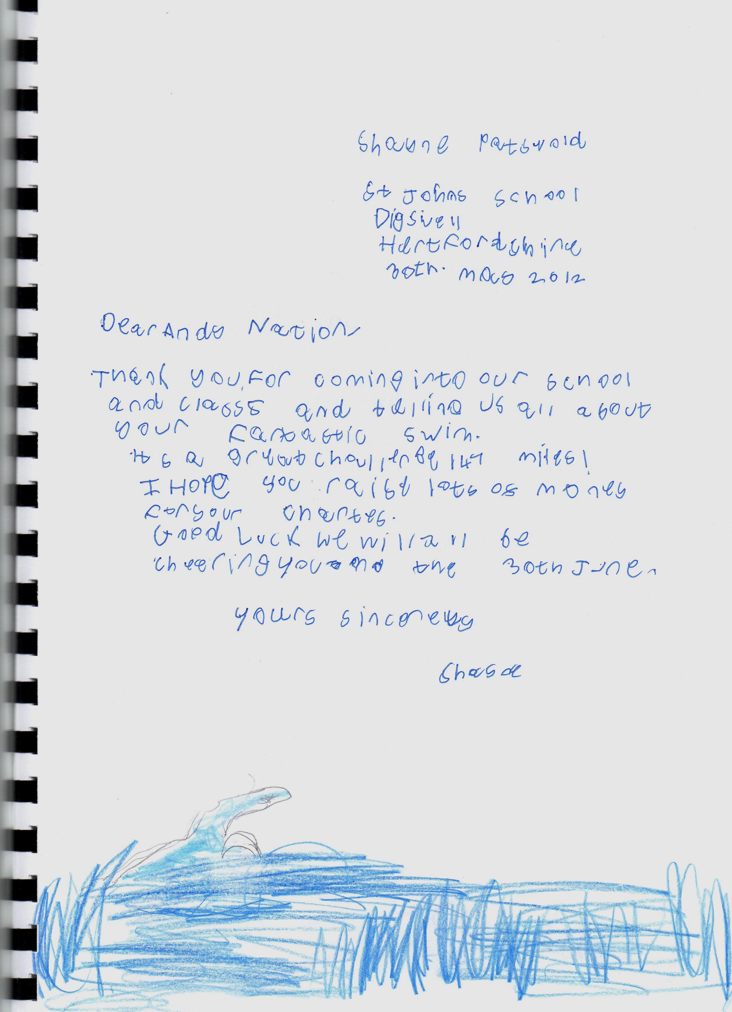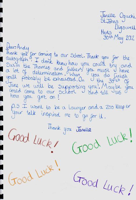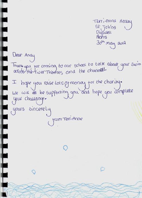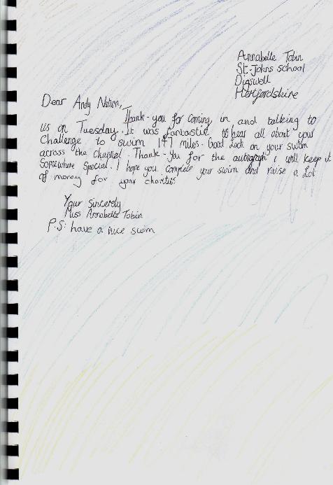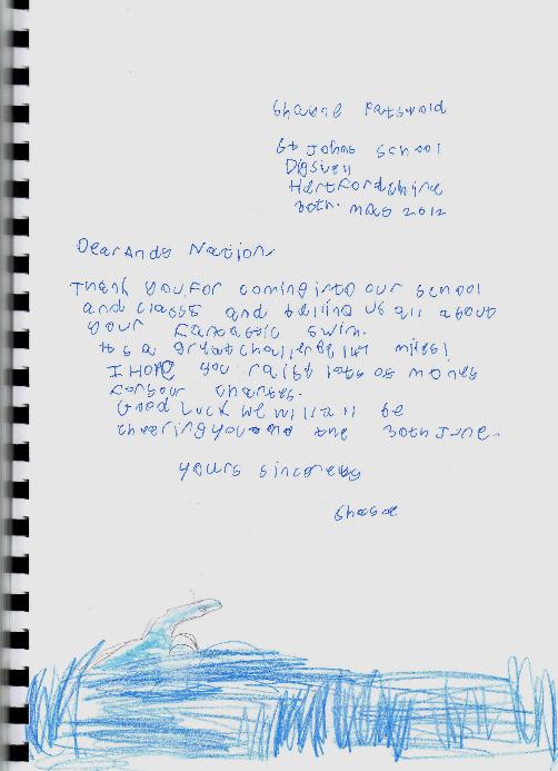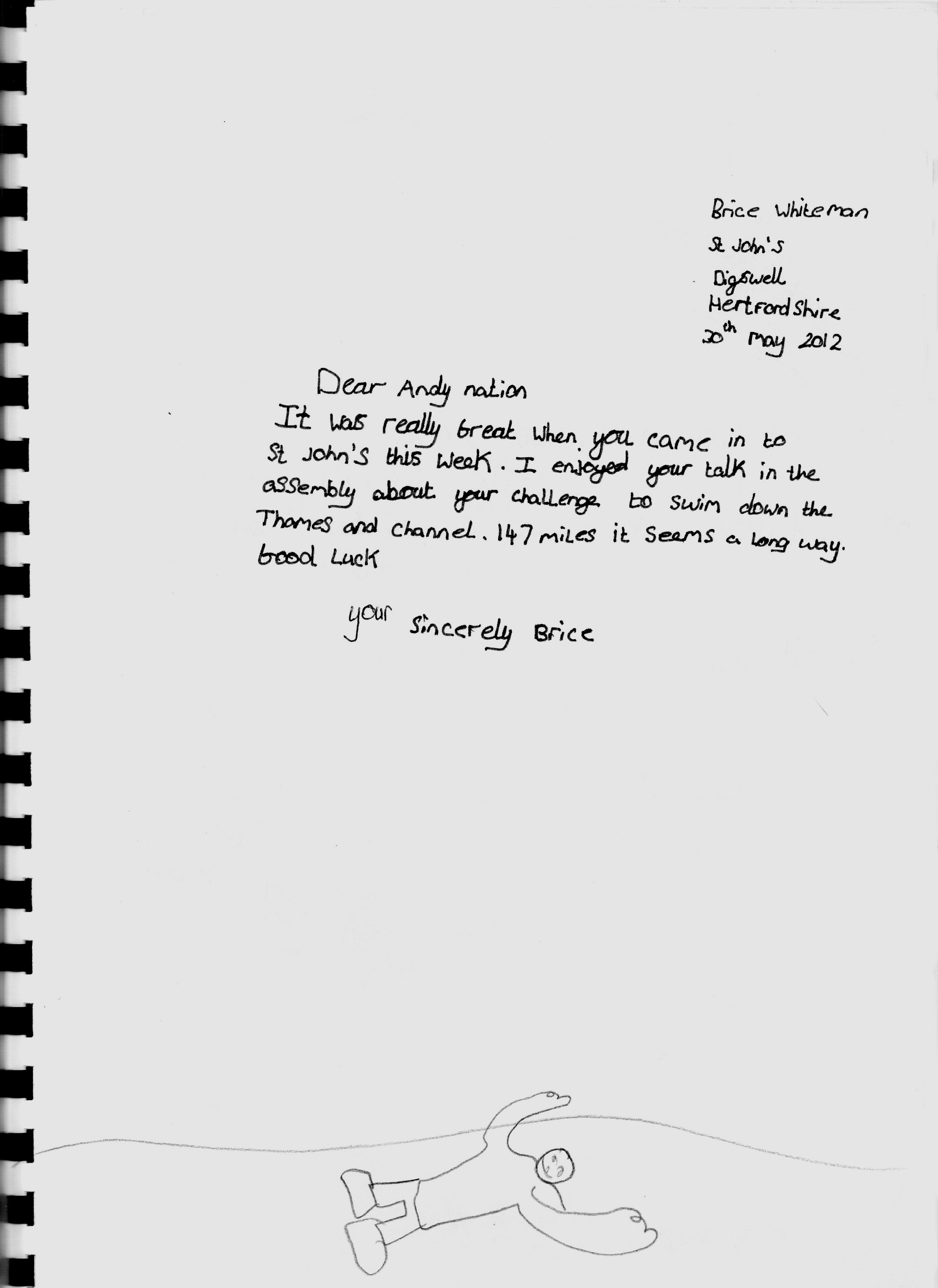 Below are enchanting letters to Andy following his visit to Class 5 of St John's School to see their project on 'Rivers'. |