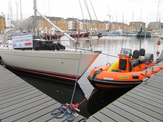 Day 3; Last night Andy had spent the whole night' ground-baiting' the Dock and was by no means recovered this morning from his food poisoning. His early intention to resume swimming today was 'pie in the sky' - literally, as he continued to revisit his meal from the night before!!! So this turned out to be another non-swimming day. He'll be having words with the food franchise that was responsible for a lost day! Tomorrow he hopes to be OK for swimming on from the Thames Barrier.