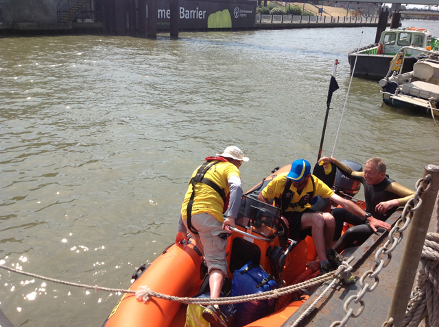 All aboard RIB 'Bob II' at Barrier Gardens Pier. Thank you, Port of London Authority for allowing us to use it. |