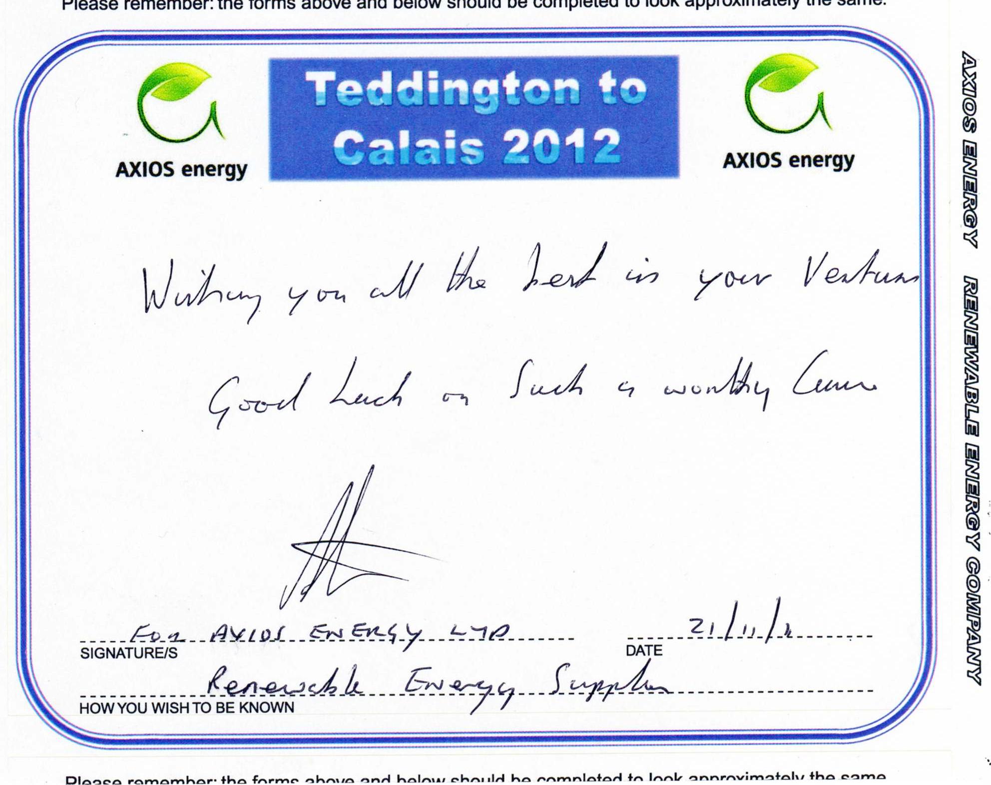 In order of largest donors at the top, these supporters of the Teddington to Calais 2012 swim have also given their entries and assorted comments;