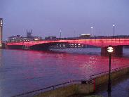 A bridge has existed at or near the present site over the period from the Roman occupation of the area, nearly 2,000 years ago. The first bridge across the Thames in the London area, probably a military pontoon bridge , was built of wood by the Romans on the present site around 50 AD.